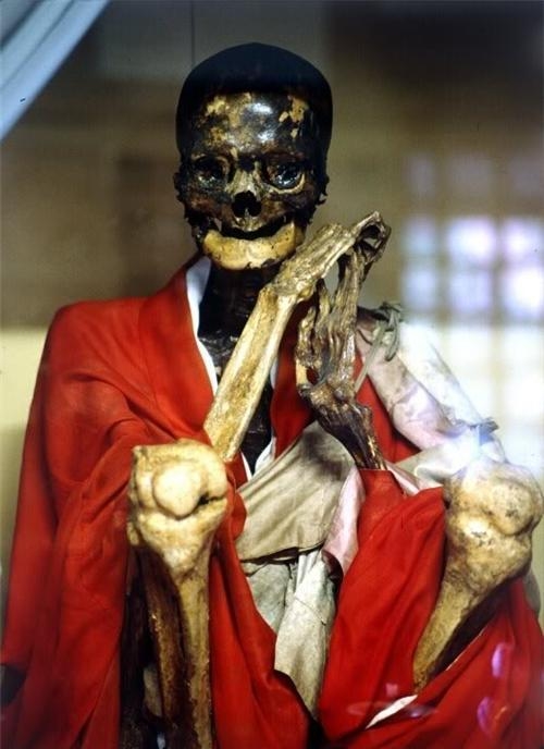 Diese waren Anhänger des Shingon-shū, eine alte Form des Buddhismus, sie starben im ultimativen Akt der Selbstverleugnung. Über drei Jahre ernähren sich die Priester mit einer speziellen Diät aus Nüssen und Samen, währendessen wird an einer strengen körperlichen Aktivität teilgenommen, die das Körperfett abbaut.
